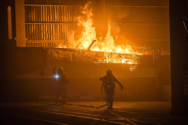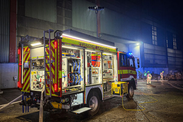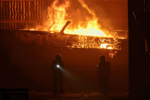 Am heutigen Sonntagabend alarmierte die Leitstelle Süd die Feuerwehren Lauenburg und Buchhorst in die Werftstrasse in Lauenburg. Zahlreiche Notrufe erreichten die Leitstelle das es in einer Halle auf dem Werftgelände brennen soll. Unter dem Stichwort "Feuer Groß" wurde zunächst die Feuerwehr Lauenburg alarmiert. Schon auf der Anfahrt wurde das Einsatzstichwort von der Leitstelle auf "FEU 2" erhöht. Schon auf der Anfahrt leuchtete die große Werfthalle feuerrot berichtete der Lauenburger Zugführer.